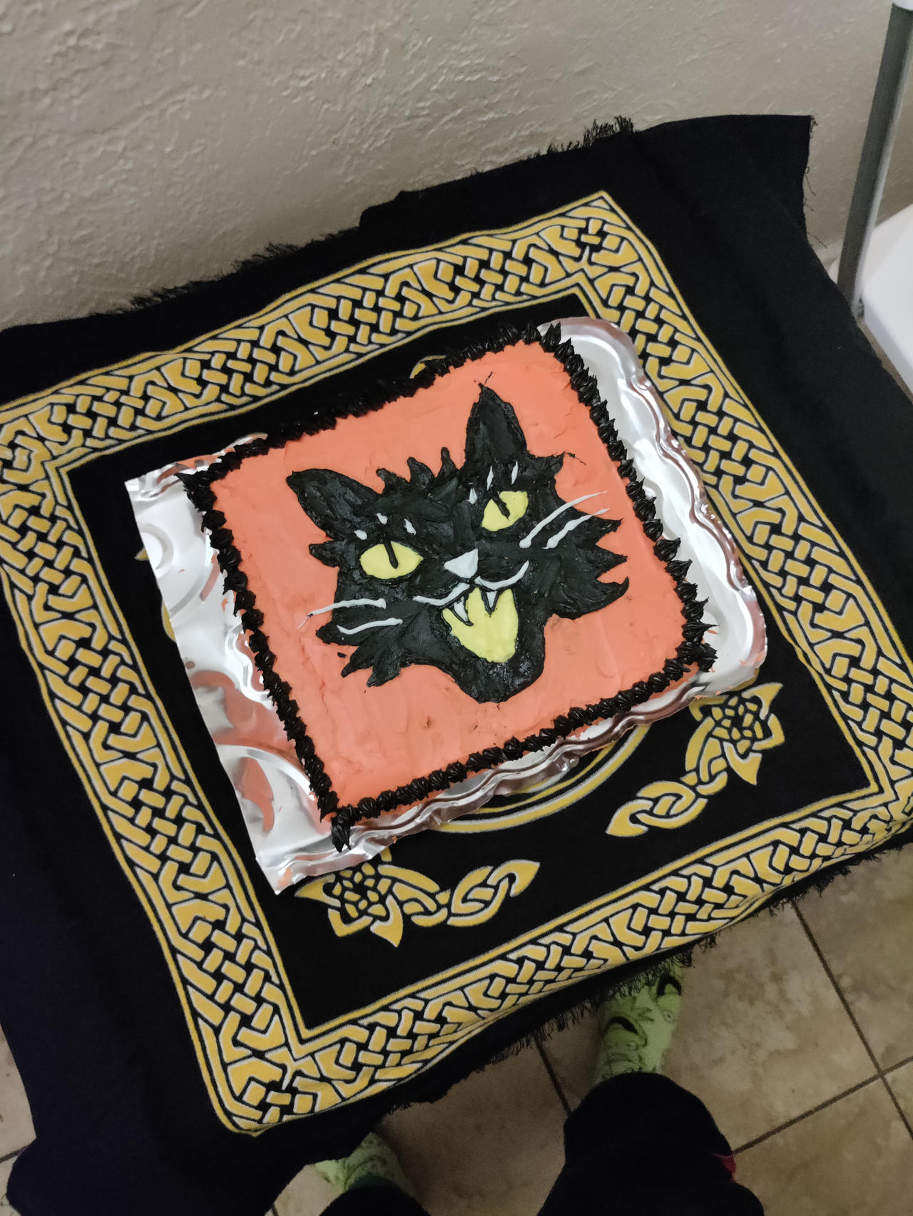 I made this cake for Halloween. We don't have trick or treaters in the bad part of town, and Alex said I couldn't carve a pumpkin because the tweakers would freak out and destroy it. I didn't particularly mind if this was the fate for my pumpkin, I feel like having your jack-o-lantern stolen or destroyed is kind of part of the holiday. I made the cake instead.